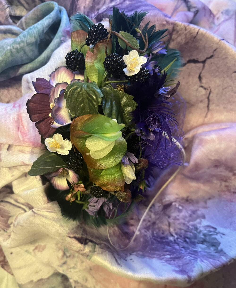 Last year I used these three colours to design a headdress of flowers inspired by the hedgerows all around me, here in South Yorkshire. It felt very special having headwear which sent out a message with great meaning close to my own heart.